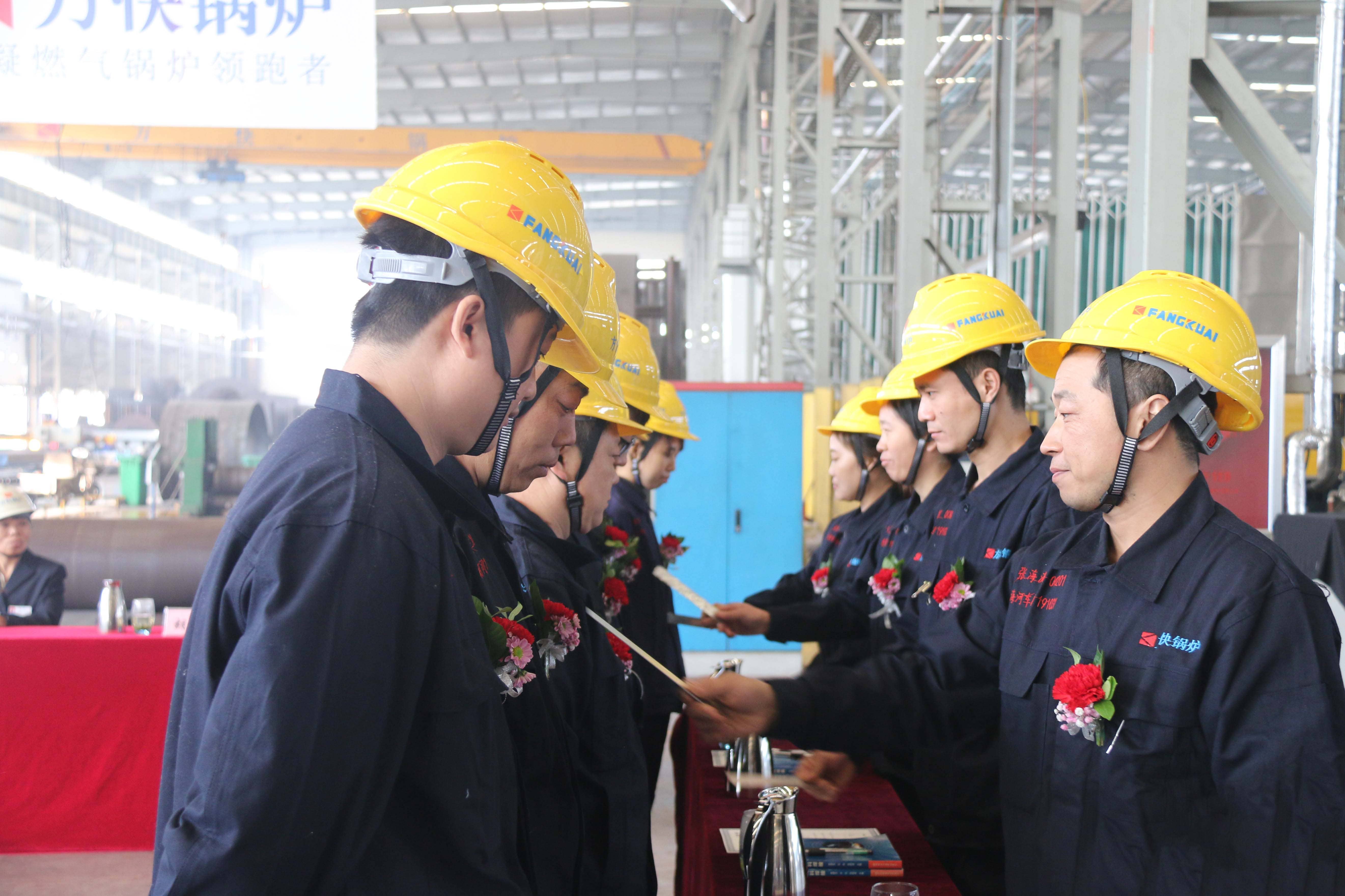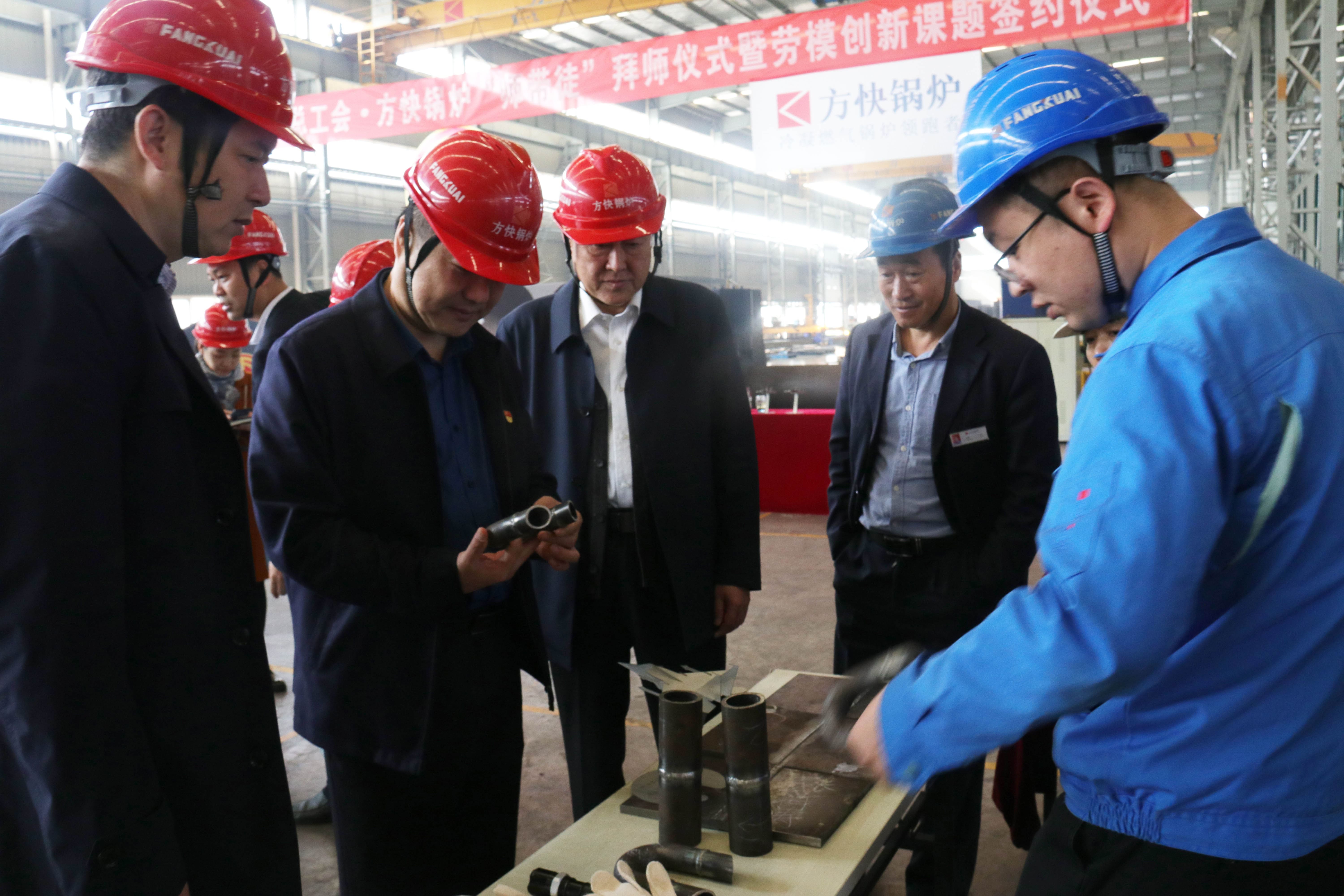 11月5日上午,在我市總工會(huì)勞經(jīng)部長(zhǎng)康小兵,我區(qū)總工會(huì)主席宋軍等政府領(lǐng)導(dǎo)和我司質(zhì)量經(jīng)理姜連菊、生產(chǎn)經(jīng)理胡翔等企業(yè)高層的見證下,2019年方快鍋爐“青藍(lán)工程”拜師儀式正式啟動(dòng)。
