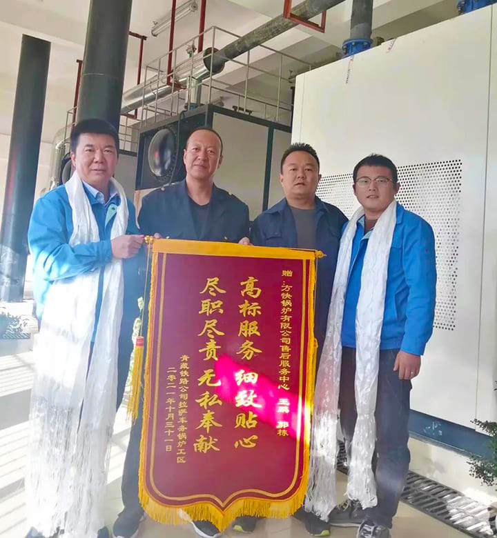 高原地區(qū)送暖早,室內(nèi)熱量要求高。為保障鍋爐的有效運(yùn)行,技術(shù)骨干僅用半天時間就完成了對整套鍋爐的調(diào)試,然后留在現(xiàn)場觀察設(shè)備運(yùn)行情況。白天,他們對20名司爐人員進(jìn)行培訓(xùn),用夾雜著安陽口音的普通話一遍又一遍地告知操作流程和常規(guī)故障的排除方法。晚上,他們檢測鍋爐運(yùn)行噪聲在夜間的數(shù)值。入夜,大家只能聽到離車務(wù)段不遠(yuǎn)的布達(dá)拉宮的“寶鈴”聲響,鍋爐運(yùn)行完全符合要求。車務(wù)段的工長看著穩(wěn)定運(yùn)行的鍋爐,看著煙分儀上達(dá)標(biāo)排放的數(shù)字,連連稱贊:“專業(yè)、優(yōu)秀。”