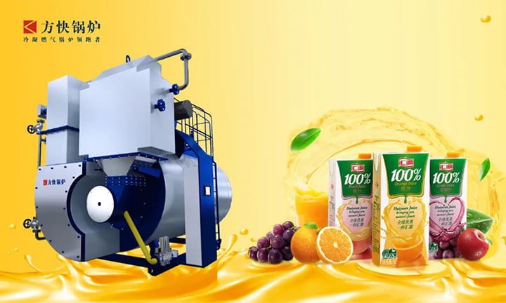 鍋爐是飲料生產(chǎn)過程中一項(xiàng)必不可少的設(shè)備,為蒸發(fā)濃縮、殺菌、無菌灌裝等多個(gè)工藝環(huán)節(jié)提供蒸汽,且蒸汽的穩(wěn)定性和品質(zhì)對濃縮果汁的純度、產(chǎn)量起著十分重要的作用。隨著天氣逐漸炎熱,各類飲品也已進(jìn)入了銷售旺季。為滿足市場需求,產(chǎn)線蒸汽供應(yīng)不足的問題顯現(xiàn)。為響應(yīng)國家節(jié)能減排、環(huán)境保護(hù)工作,經(jīng)過多家鍋爐廠研究對比,匯源集團(tuán)對方快的低氮冷凝鍋爐充滿興趣。
