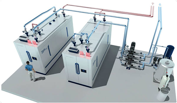 以上就是一套傳統(tǒng)鍋爐系統(tǒng)的基本構(gòu)造,方快鍋爐塔利亞真空鍋爐 T7 采用的是整裝設(shè)計(jì),不再是鍋爐 + 燃燒器的組合,而是采用耦合技術(shù),通過計(jì)算機(jī)模擬,根據(jù)鍋爐的受熱面對火焰進(jìn)行調(diào)節(jié)與匹配,使燃燒與傳熱得到量身定制般的優(yōu)化,鍋爐運(yùn)行更加高效節(jié)能,且穩(wěn)定性更高,響應(yīng)更快。方快塔利亞系列真空鍋爐節(jié)省外掛燃燒器的占地空間。各設(shè)備的內(nèi)置設(shè)計(jì),使得該系列鍋爐到達(dá)現(xiàn)場直接安裝管道即可使用,非常方便。
