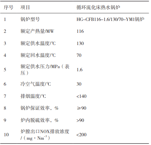 某電廠裝機2×300MW供熱機組,為保證供熱的安全可靠,避免在停運最大一臺機組時對供熱產(chǎn)生過大影響,在廠內(nèi)新建1×116MW循環(huán)流化床熱水爐(見表2)。