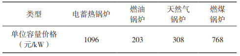 為了解不同備用熱源的特點,本文從建設成本、運行成本等方面對已建成的電蓄熱鍋爐、燃煤鍋爐、燃氣鍋爐、燃油鍋爐、啟動鍋爐等開展分析。