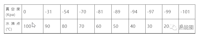 水的沸點(diǎn)與真空度對應(yīng)表: