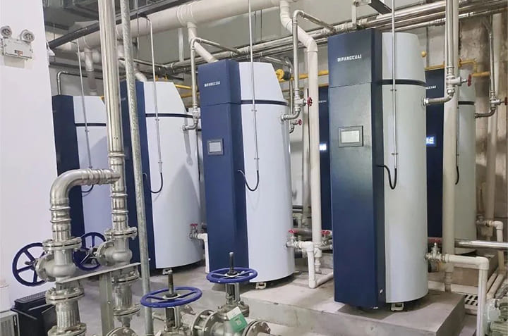 基于建設(shè)和系統(tǒng)投資成本,考慮到該項(xiàng)目建筑分散性布置,用水點(diǎn)分散且需求量大的特點(diǎn),故委托方快鍋爐為其量身定制一站式熱水解決方案。經(jīng)過(guò)方快技術(shù)專家論證,最終為該項(xiàng)目選用10臺(tái)模塊化并聯(lián)式容積式燃?xì)鉄崴疇t,為300余間干部住房及泳池提供舒適熱水。